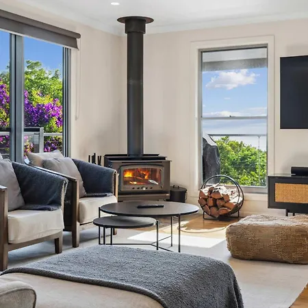 Flaxton Garden Home With Spectacular Coastal Views overlooks the garden.